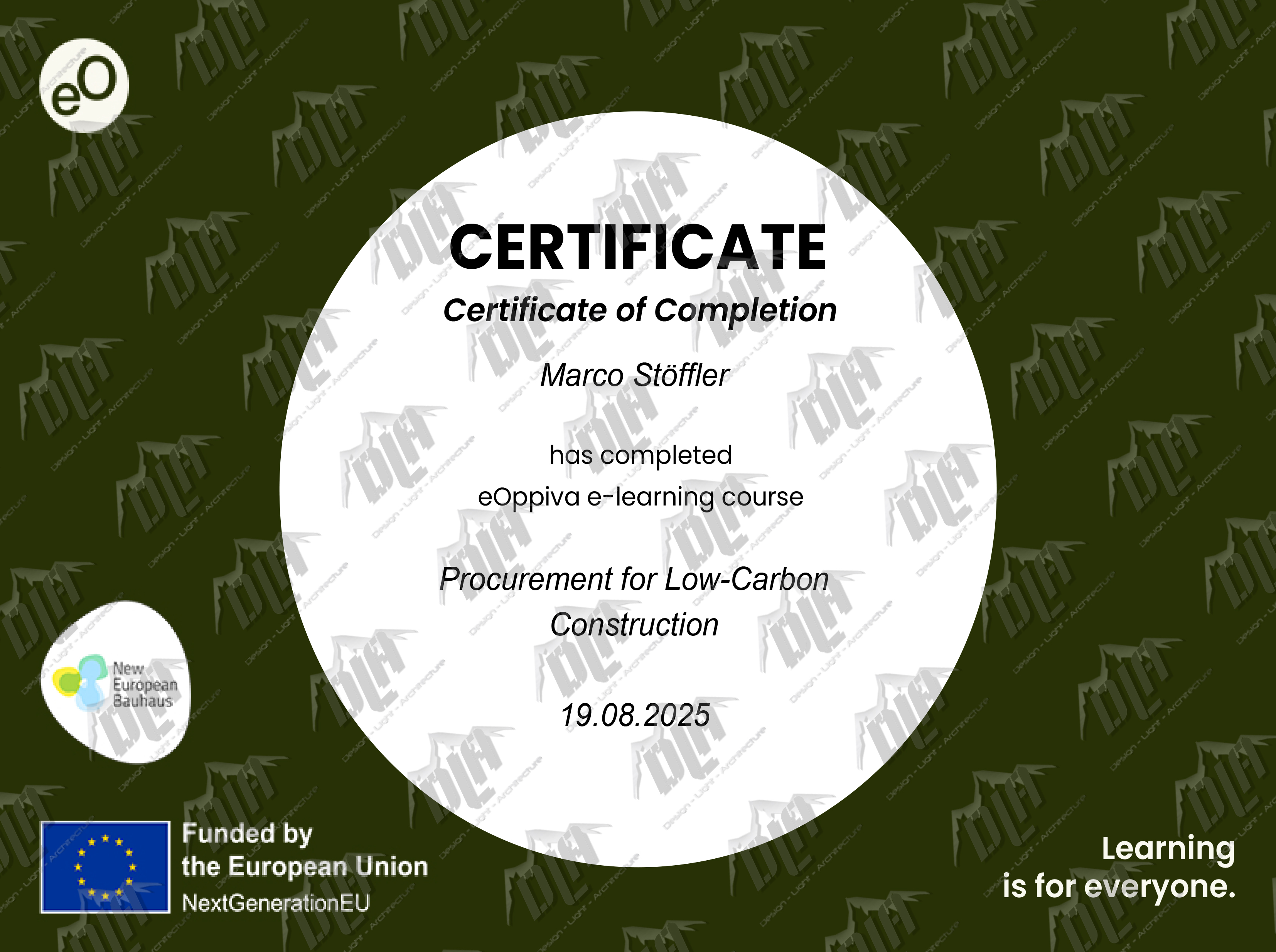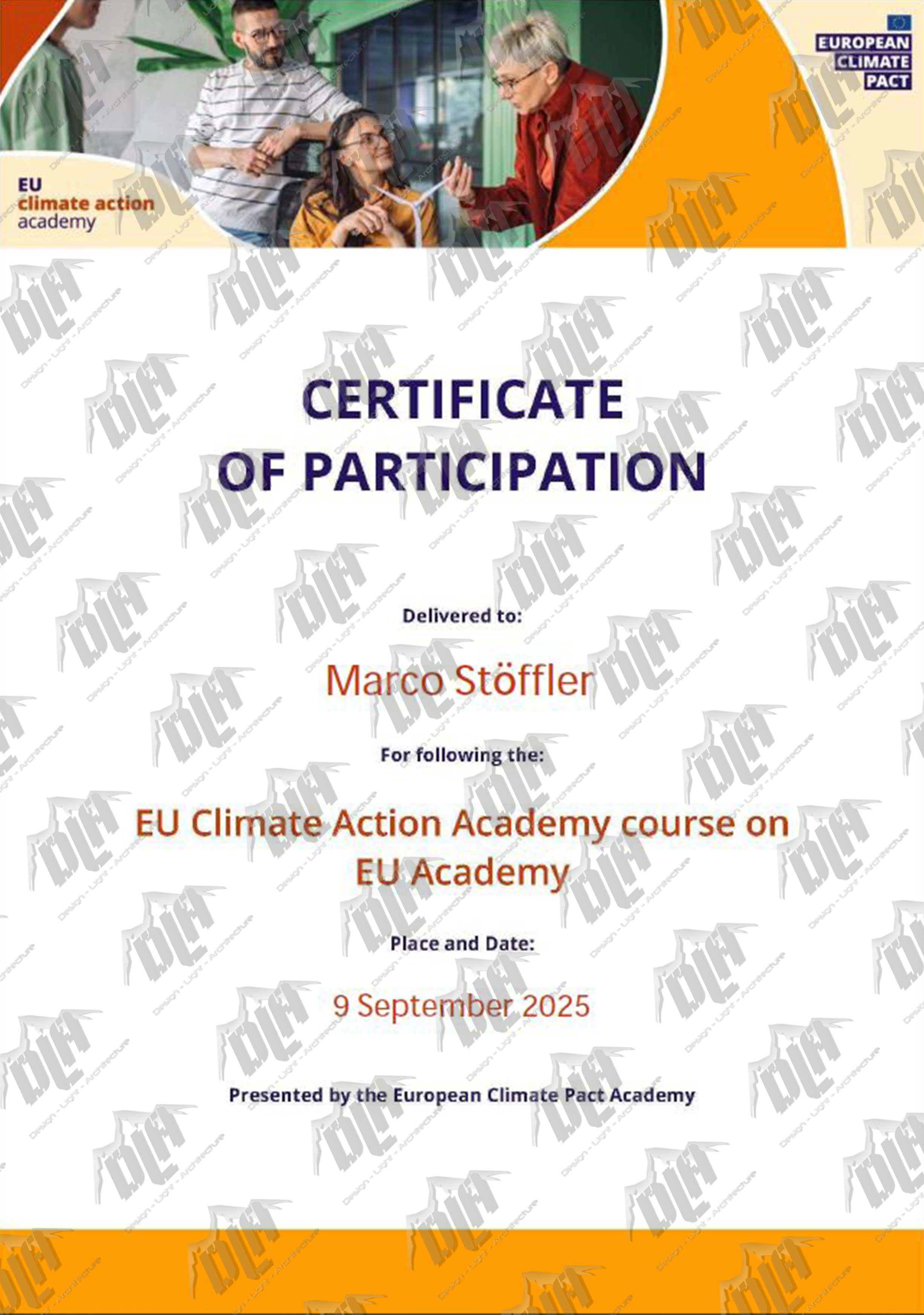 - 2025 Fortbildung/Teilname am Online-Kurs "Level(s) - Sustainable Performance in Buildings" durch die "EU-Academy".