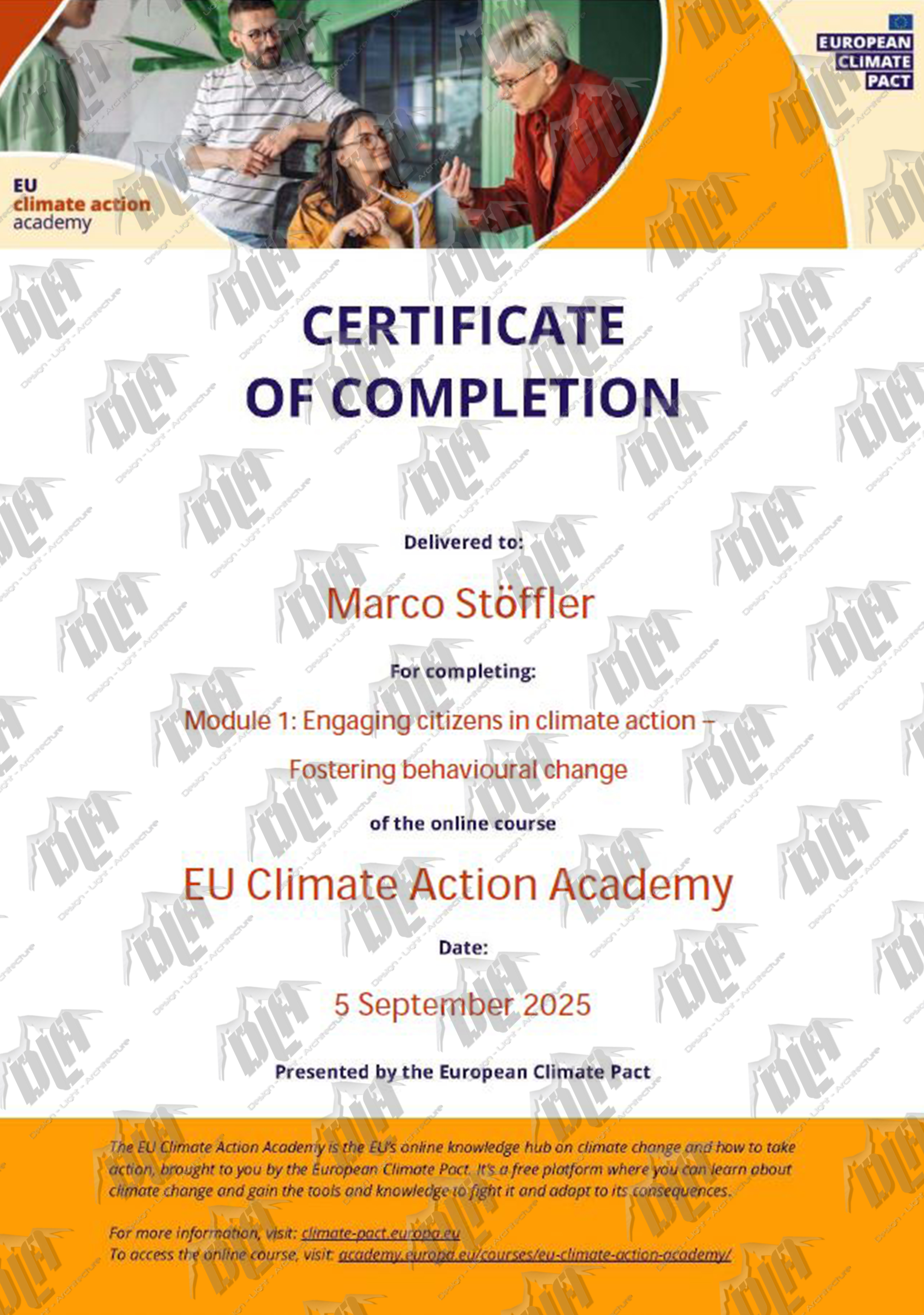- 2025 Fortbildung/Teilname am Online-Kurs "EU Climate Action Academy" (1 , 2) durch die "EU-Academy".